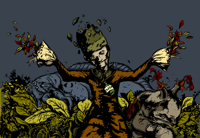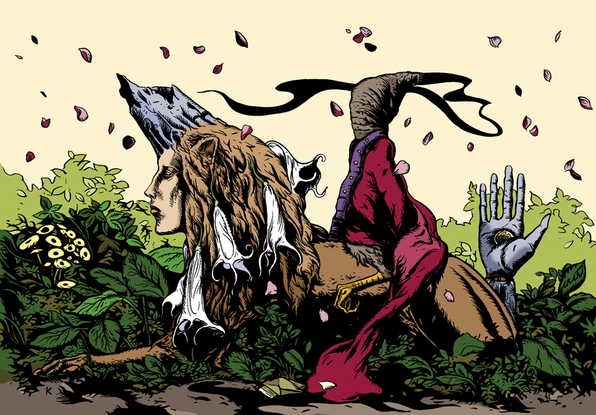 I’ve been exploring some new territory of late, adding digital colour to scanned ink drawings. What began as technical curiosity, the search for a particular effect has now, to my chagrin, become a bit addictive. I love the way the flat, comic like application of the colour works with the brushed ink. I’m stoked enough about this that I plan to use this for a serious project. I’ll be talking about that more in the near future, but I thought you might like a peek at the direction.
