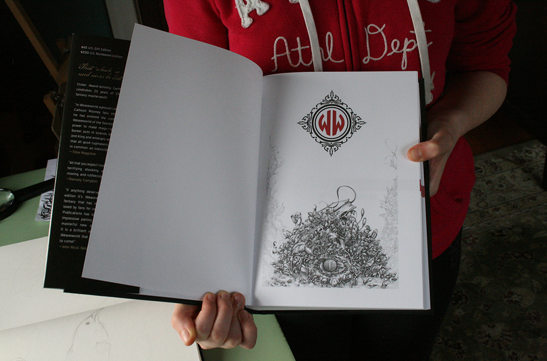The 25th Anniversary Edition of Weaveworld arrived last week. Opening a book that I have had the good fortune to contribute to is a moment I always anticipate with great excitement. Having spent a number of months working on the illustrations for Weaveworld I could hardly get the bubble-wrap off quick enough. These were not easy illustrations to render. Pointillism is a demanding technique but once I had seen these images in my minds eye, they couldn’t be unseen and they called for this technique. I wouldn’t change a thing.