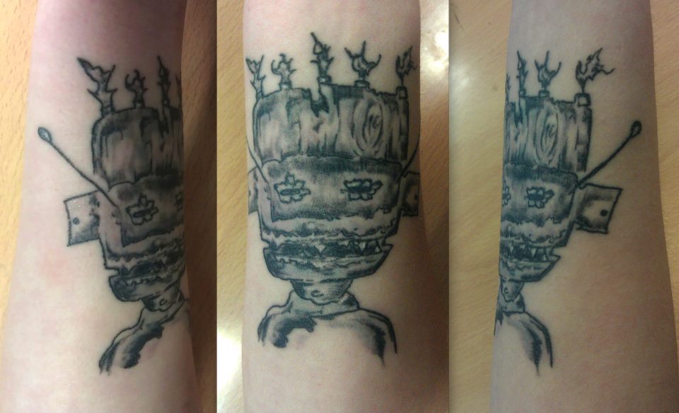 Sam Bernardes just sent me a great shot of her new tattoo, which was based on one of my Monstrous Tinies! The tattoo was executed by artist Rachael Jennings who works out of Leamington Spa in the West Midlands of England at her studio called ‘Passion and Pain’. Thank you Sam, thank you Rachael!
