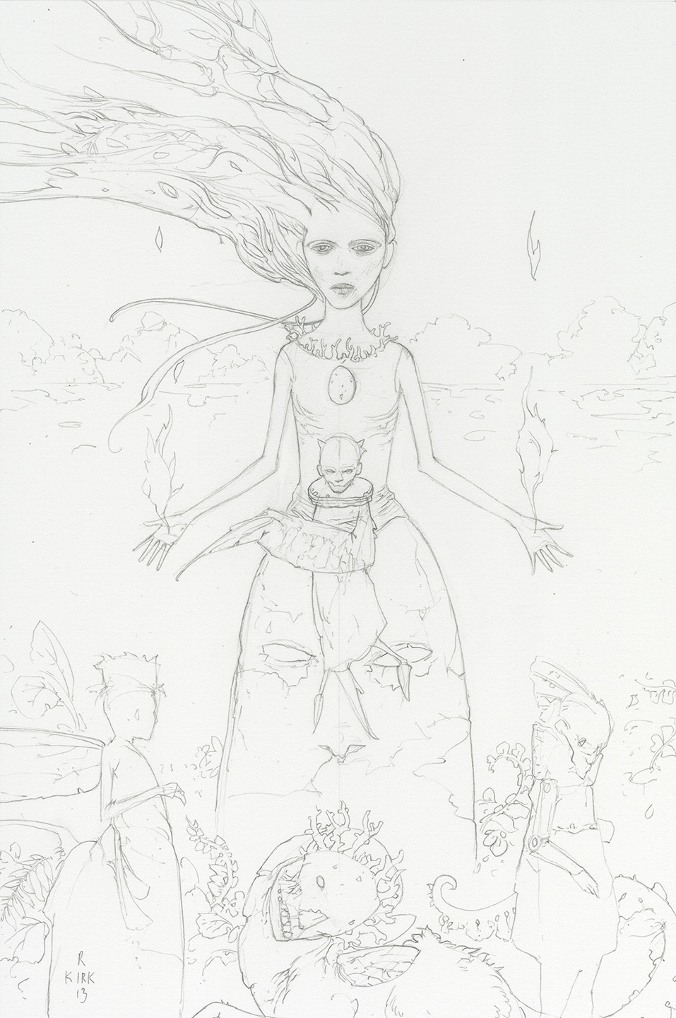 This is the pencil under drawing for a new commission piece that I’ll be working on for the next couple of weeks. It’s called The Invisible World. I’ll be blogging some updates as it progresses.