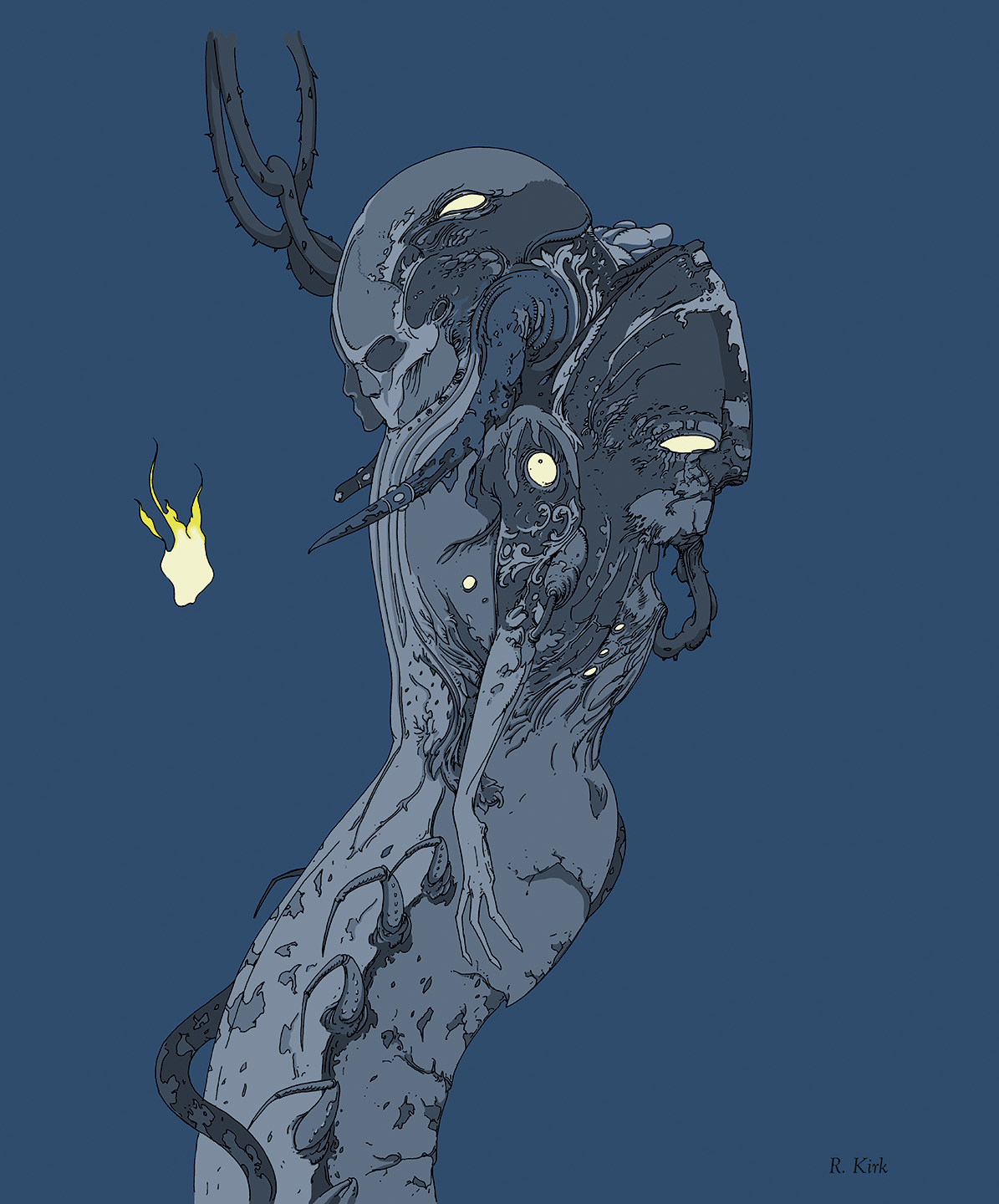 I just finished coloring this drawing. The actual ink was done earlier in the year. Over the last few days I’ve been focused on digital coloring. My motivation for stepping outside of my usual analog mode of working (painting and drawing) came from looking at the works of some other artists: Moebius, Mignola and Tomine. What attracted me was the use of flat color. For that reason I set myself a single guideline, which was to severely limit any 3D modeling. The “feel” is certainly different from what I am used to but I can see a lot of intriguing possibilities.