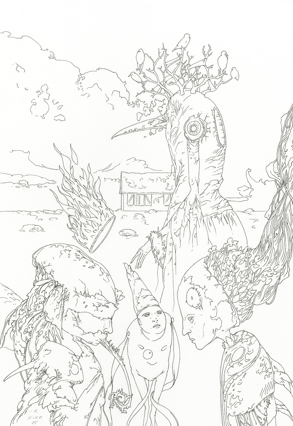 For those interested in seeing work in progress, this is the outlined drawing for a new piece called The Dark Bead. Eventually, it will be a fully rendered pointillism piece, like the drawing Lens, in my last post. I enjoy these works at this stage. In fact in the past I have occasionally stopped at the outline, just because I like the quality of a line. Anyway, I will post some progress shots of this one.
