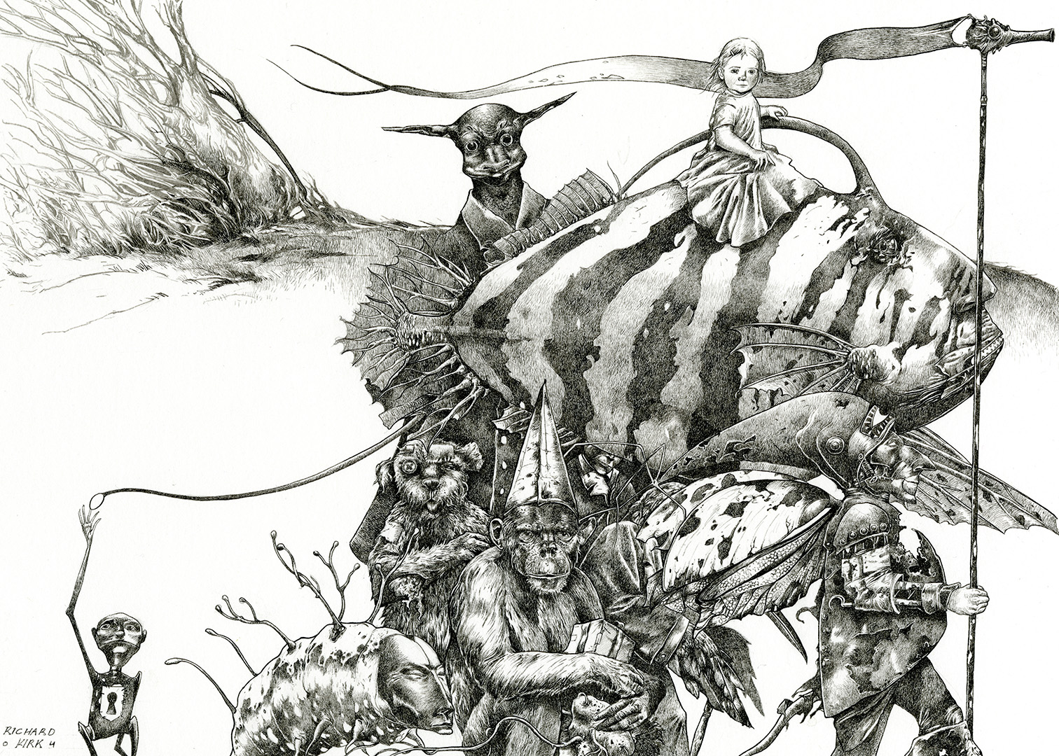 I’ve been thinking of doors to different worlds for many years. Or maybe its the same world, just many different doors. The first drawing was done in 2004, the second this summer. The theme is similar, a child accompanied by fantastical creatures on a journey to somewhere. The earlier one was done when my daughter was small. It’s a portrait of her. The second was from a photograph of a Victorian child, in somewhat different circumstances than I have depicted here. I wonder what the adult, which the child later became, would have thought of my drawing?