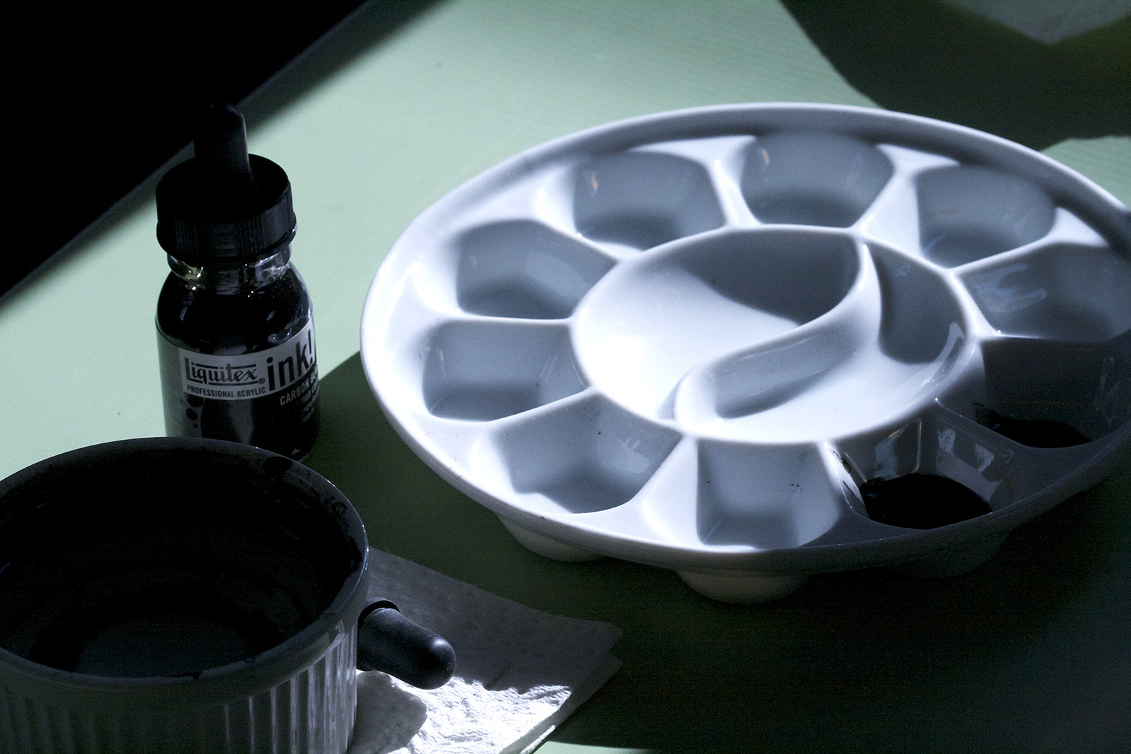 One of the great things about working in ink is the simplicity of of the tools. It’s amazing what you can do with a bottle of ink, some water and a brush.
