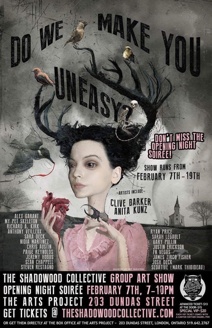 I am really thrilled to be showing my work with this diverse and exciting group of artists. If you are in the area don’t miss a chance to check it out. This kind of show is rare in London. I have 3 miniature prints available and 5 original works. This afternoon I had a chance to see some of the amazing works by my My Pet Skeleton and Sarah LeGault. Incredible stuff! See you there.