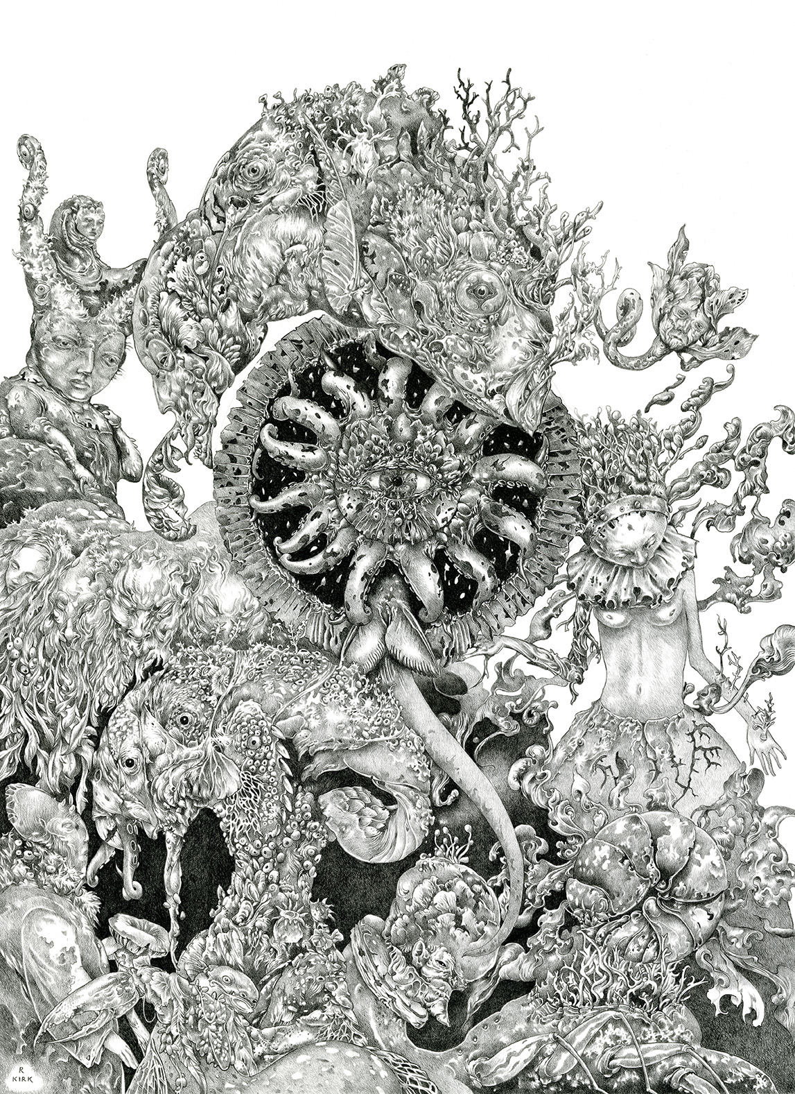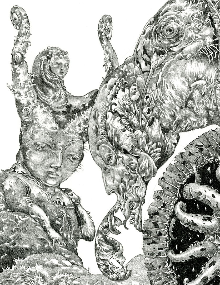 I spent much of yesterday finishing this drawing, which has been in my studio for a while. It was originally conceived for a Lovecraft themed show at Copro Gallery a couple of years ago (curated by Cris Velasco). Unfortunately, my workload at the time was very heavy and in the end I went with a smaller piece. Anyway, it was great to finally get this piece finished. Love this medium, and I will definitely be starting another carbon pencil piece right away. Hopefully it won’t take two years to finish!