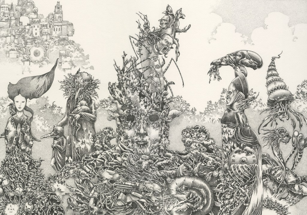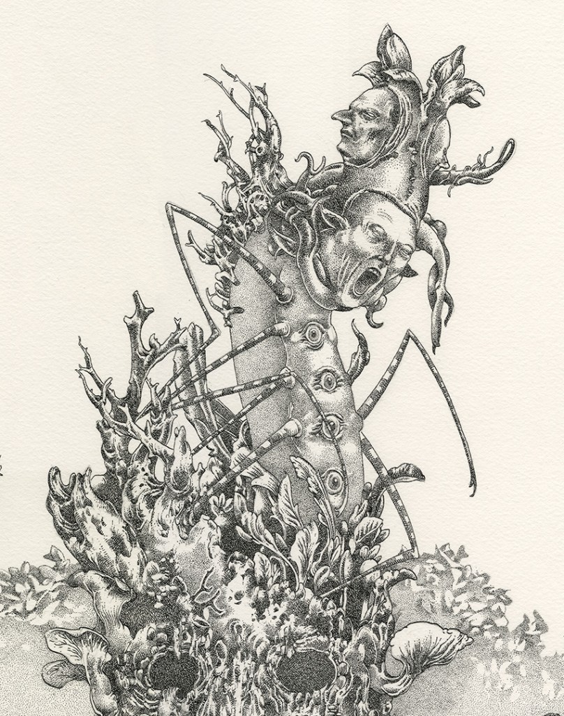 Back in March, when Covid 19 started to seriously impact our lives, I knew I wanted to do a piece of art as a way of processing what was happening. I had a large sheet of watercolour paper mounted on an archival board that had been sitting around the studio for a number of years. This seemed like the right surface for this project. The imagery came out of my subconscious, mostly fragments of dreams I was having, and some were pulled from sketchbooks. The theme is simple: human knowledge and structures, represented by the tree of knowledge, are humbled before nature.