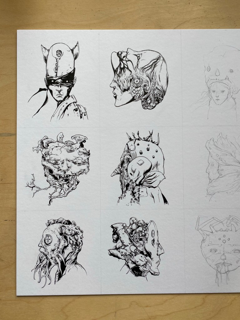 Over the weekend, I created a new series of miniatures. They were created on acid free art board with ink and brush and then tinted with watercolour. This grouping is the first six of twelve.