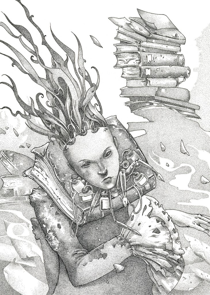 This drawing was originally going to be an interior illustration for my short story collection Magpie’s Ladder. I always liked the drawing, even if it didn’t quite capture the character it was intended to portray. I’ve renamed it The Bibliophile and put it up for sale on my Big Cartel shop along with a few other things.