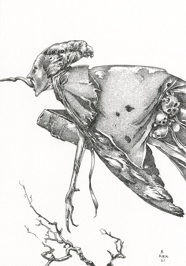 My next couple of posts will centre on some drawings I created at the end of 2021. I am a little in love with this Bristol Vellum from Fabriano. It’s a nice paper for stippled pen work—just the right amount of tooth to add some sparkle to the finished drawing, but not so much that it interferes with technique. Even in the dense areas there is no bleeding of ink. I’m going to see what larger tablet sizes they have. The inking was done with Staedtler Pigment Liners, which I’ve been using for convenience for the last few weeks. They are lightfast and feel good in the hand. I think I prefer them to the Micron fine liners.