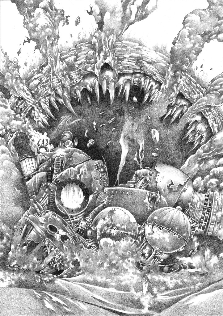 A couple of years ago, I was approached by Earthling Publications to illustrate a very limited collector’s edition of Dune. In the months that followed—of course, I said yes—I created 12 large graphite and carbon pencil drawings for the interior and a wraparound cover in oils.