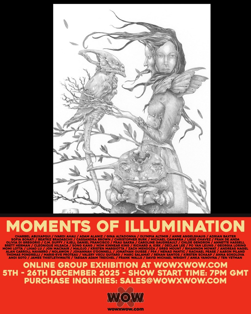 My new drawing, Mockingbird, is featured in a new online show called Moments of Illumination presented by WOWxWOW. The collector’s preview is now online. This graphite, 12” x 9” piece was completed in late November on 140lb Arches hotpress paper.