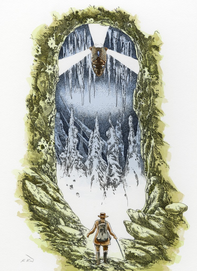 As mentioned, with this piece I was going for a vintage look. I think this could be an illustration for a “lost” Jules Verne novel or maybe a graphic novel about Victorian explorers meeting an alien probe—ah the possibilities. I hope you enjoy these new works. Feel free to leave a comment.