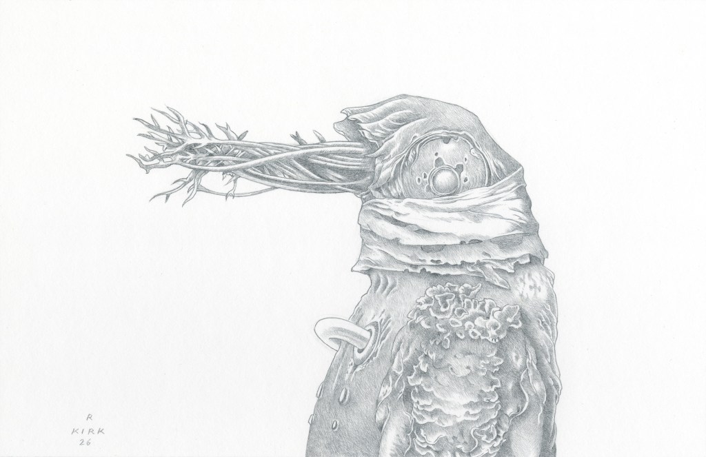 The Conspiracy will include 13 drawings when complete. The drawings in this series are a little larger than the miniatures I was doing before. The previous works were 3.5″ x 4″ and these are 6″ x 9.” The difference in size gives me a little more breathing room. Each piece will feature a unique fantastical creature against a white background. I am posting each image to my website as they are completed. The first two images below…